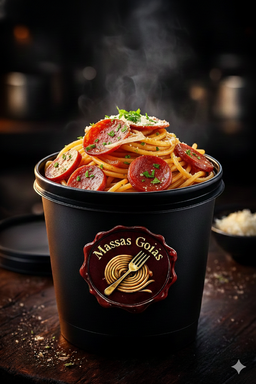 Macarrão tipo espaguete com calabresa e cebolas pote de 500ml.