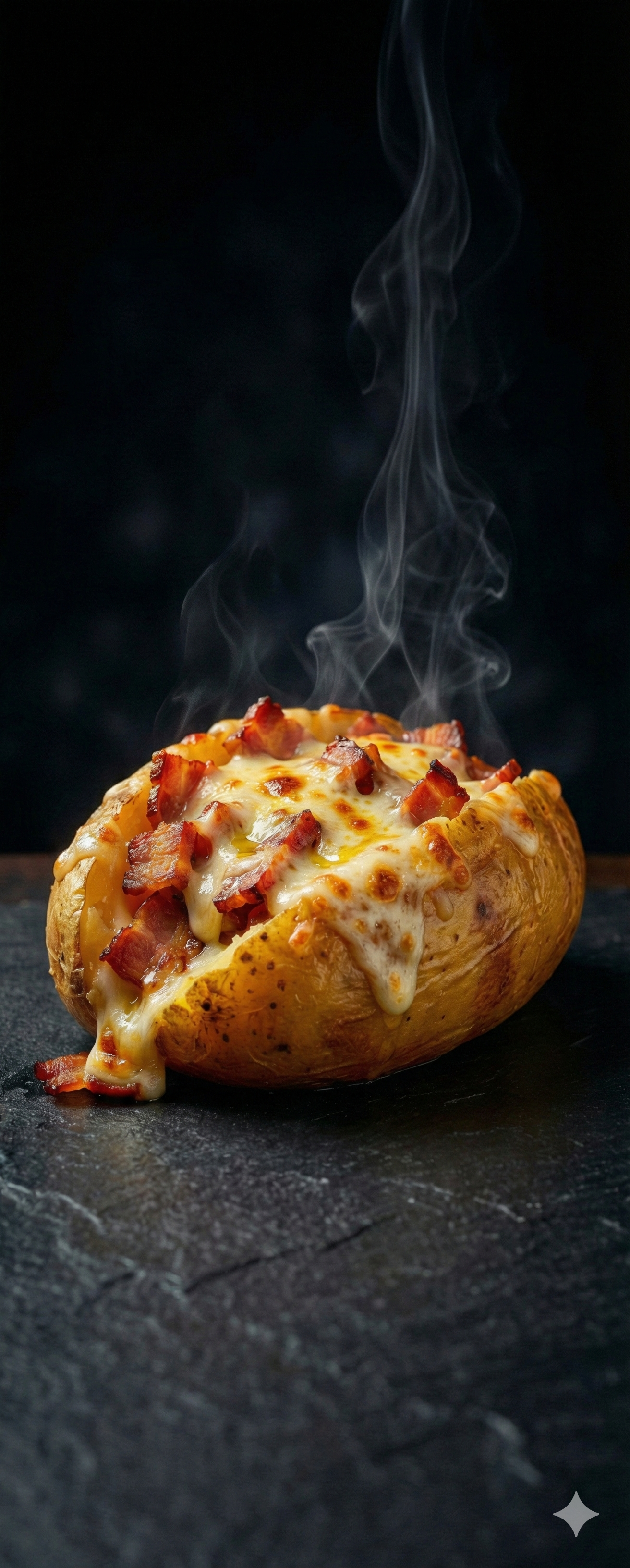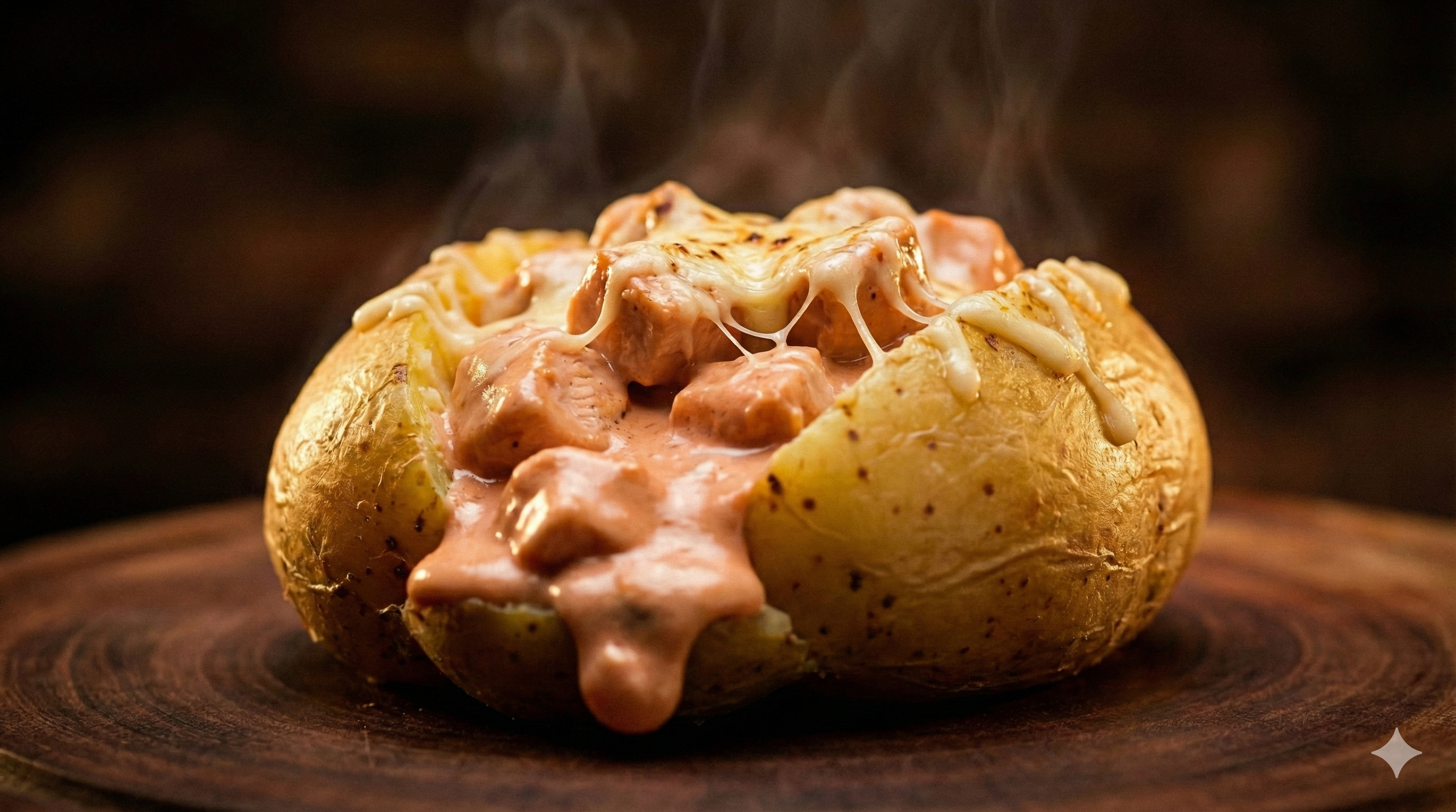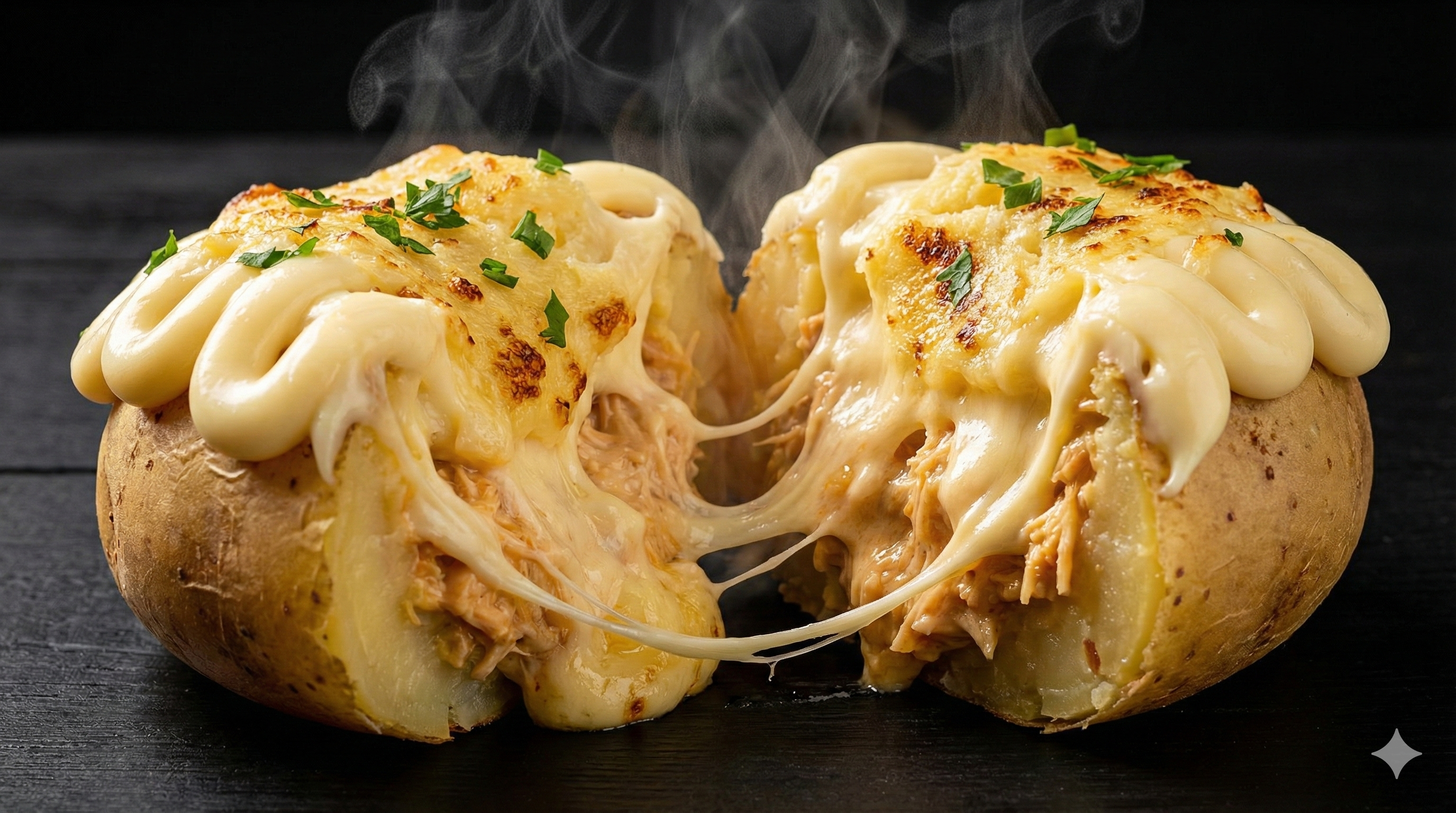 Batata perfeitamente cozida com frango cremoso, mussarela e bacon.