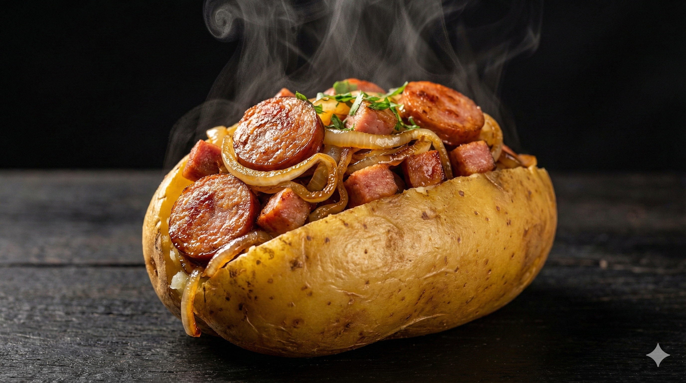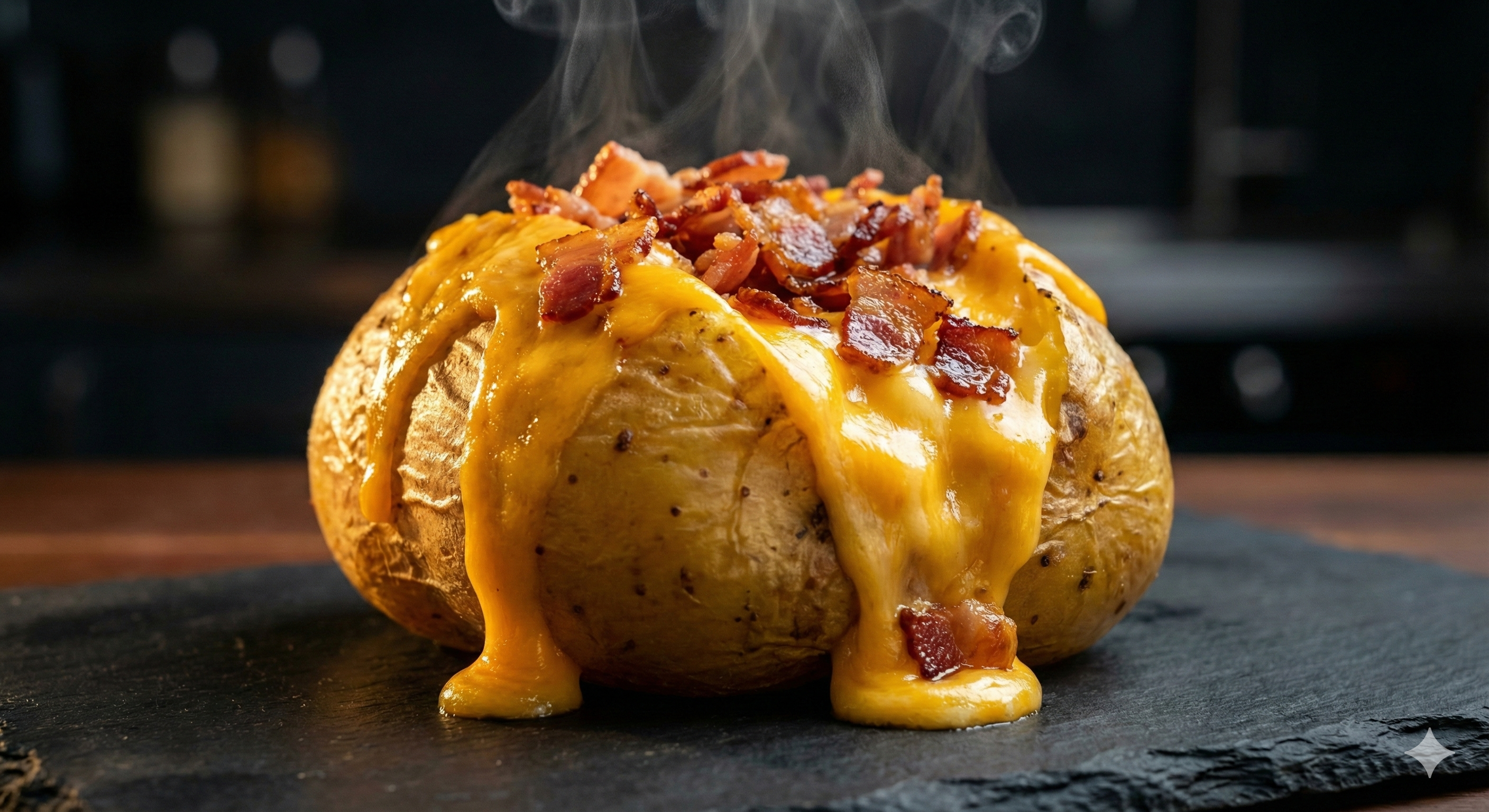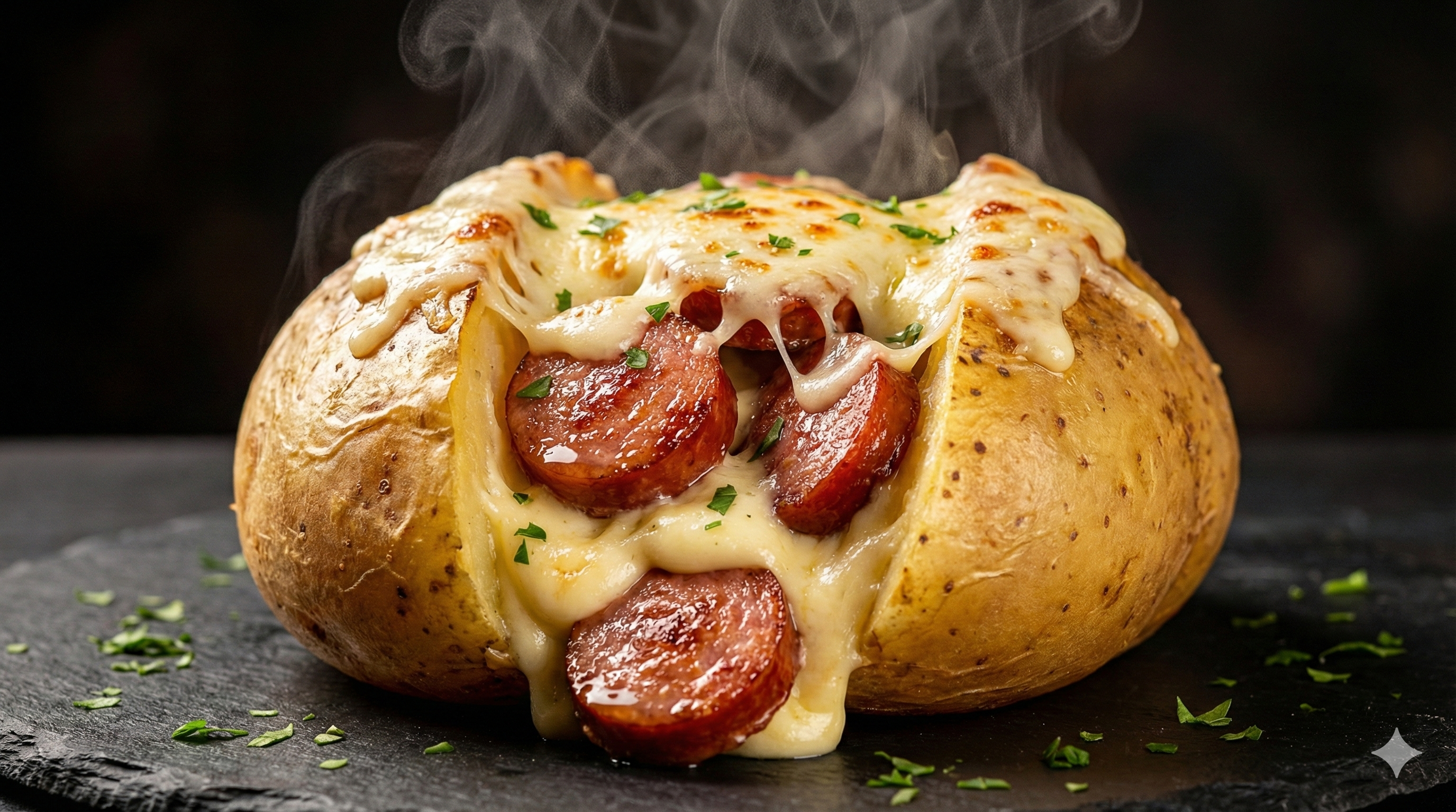Batata perfeitamente cozida com frango cremoso, mussarela e bacon.