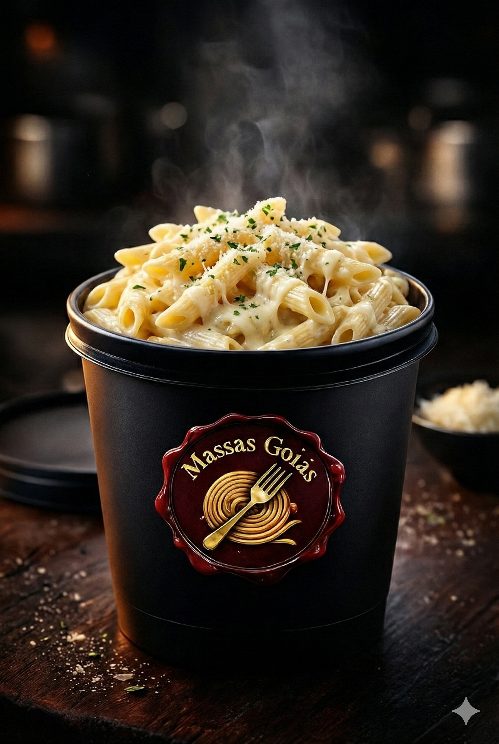 Macarrão tipo talharim acompanhado com molho branco de camarão pote de 500ml.