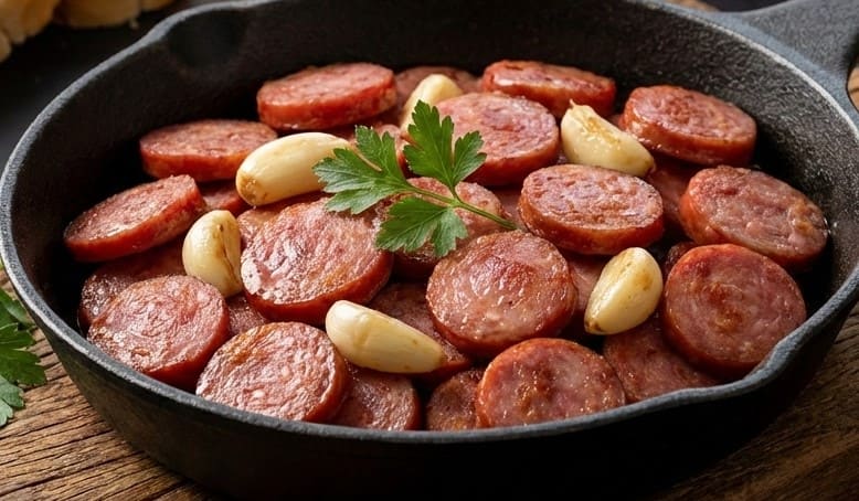 Batata perfeitamente cozida com calabresa acebolado.