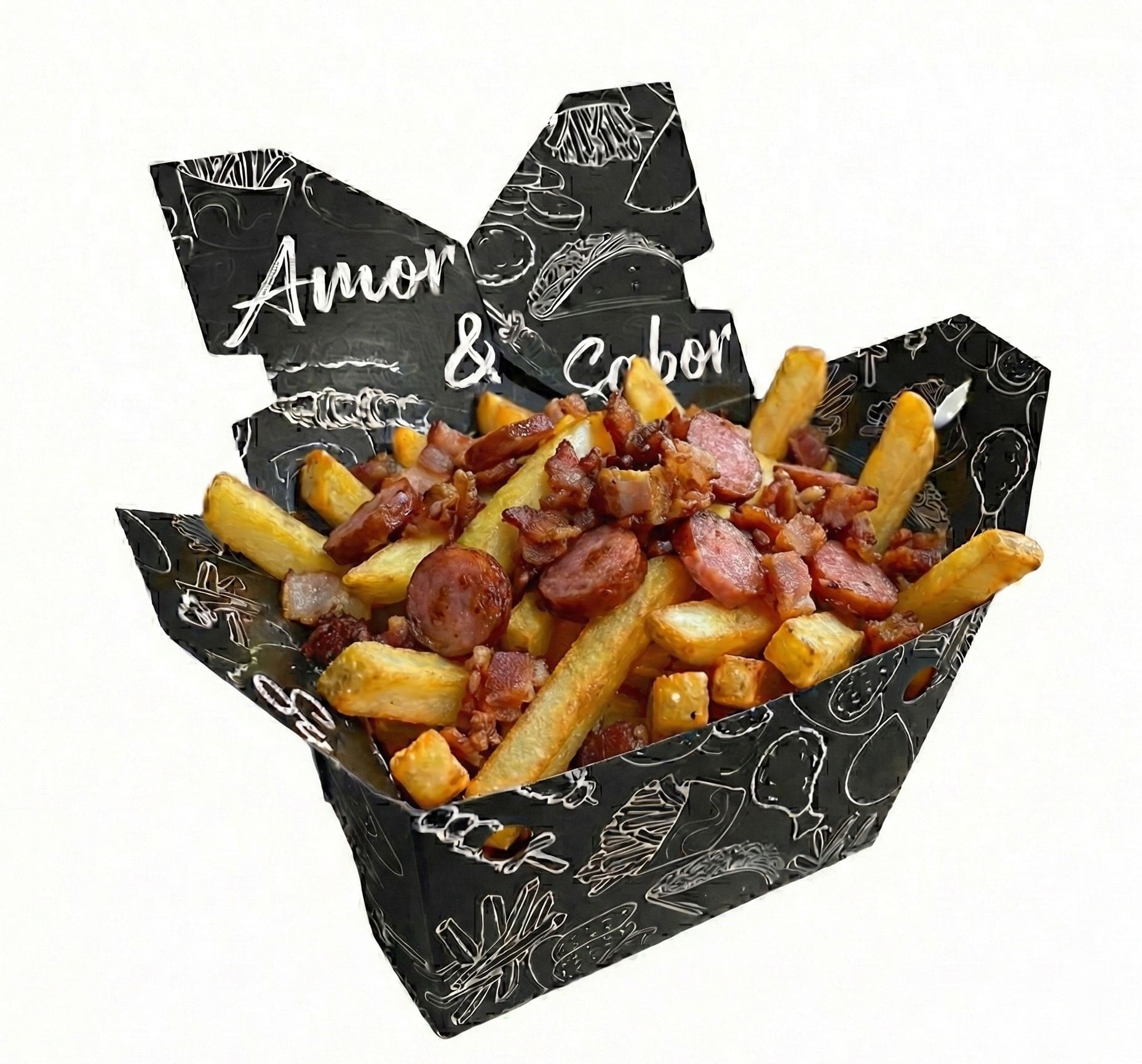 Batata frita com calabresa e bacon (500g).