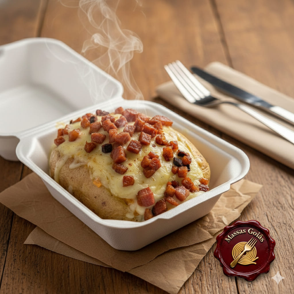Batatão Bacon e Cheddar + Mussarela Gratinada Extra!