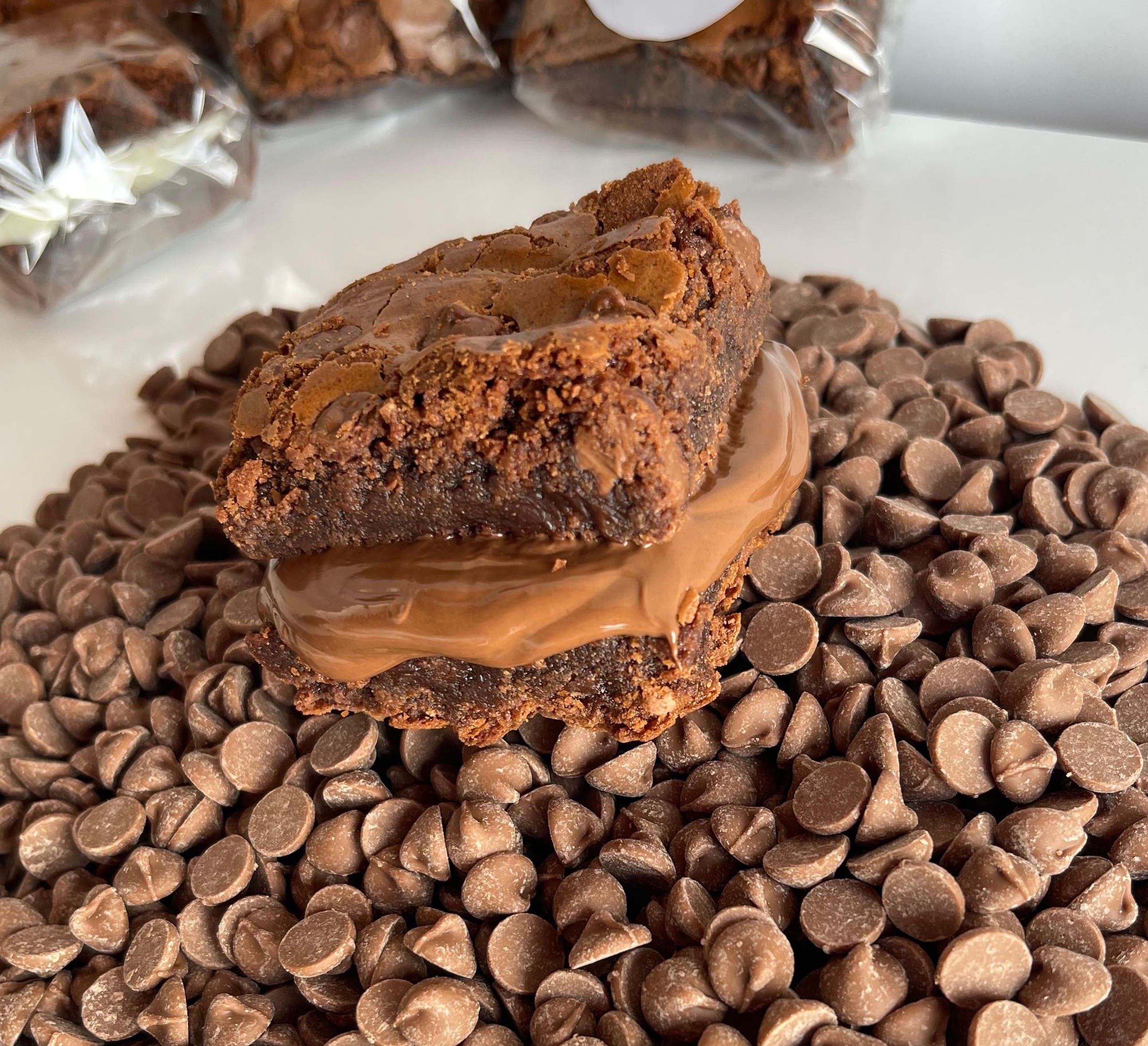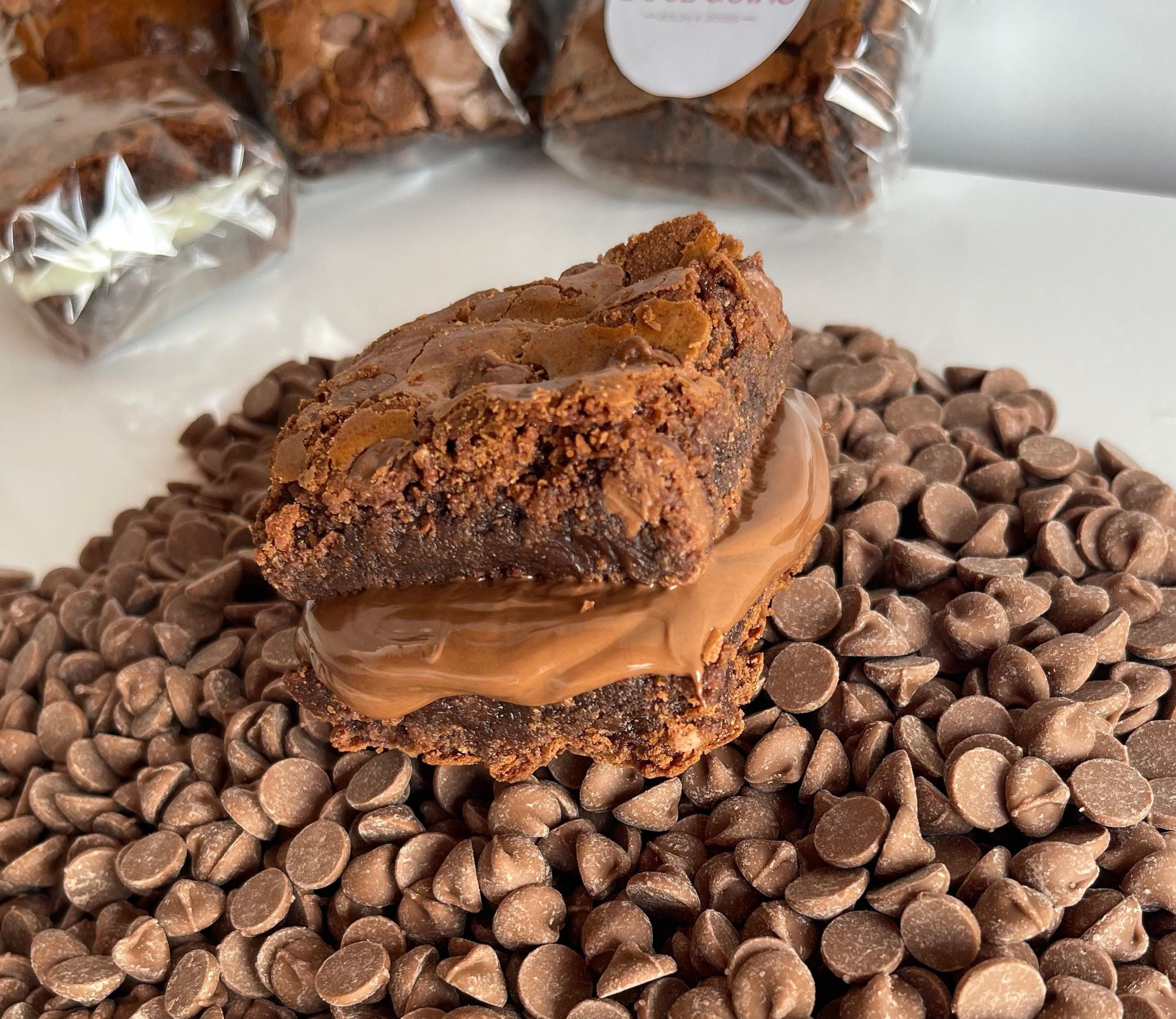 Brownie crocante por fora e molhadinho por dentro, recheado com a verdadeira Nutella.