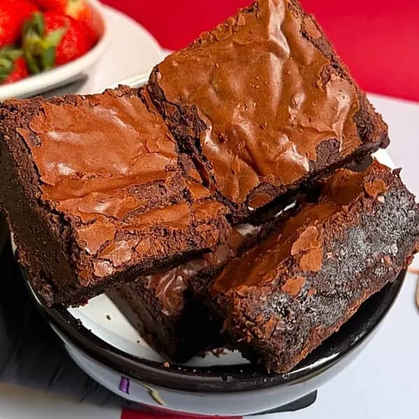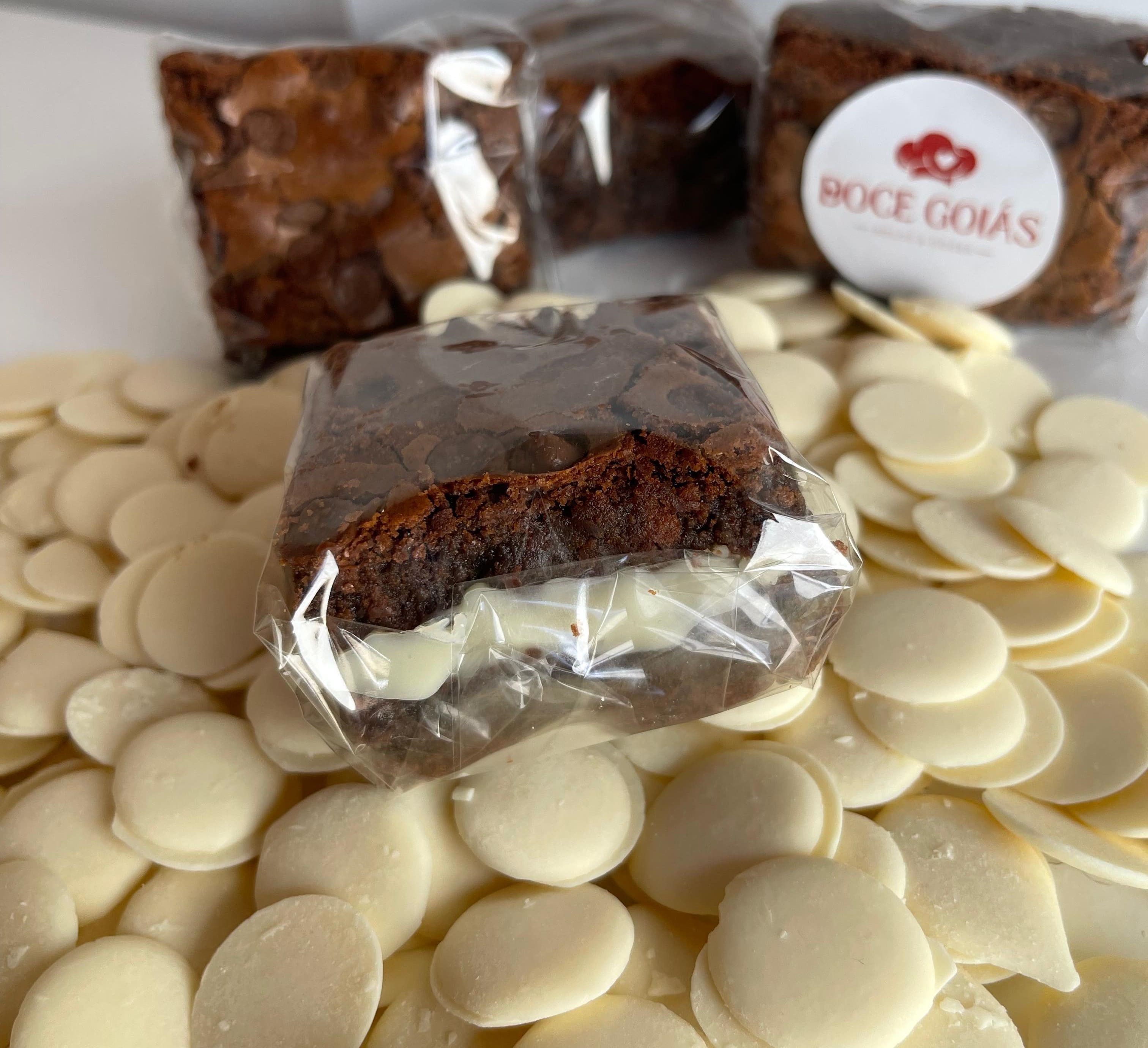 Brownie tradicional de chocolate cremoso com casquinha crocante, feito com 50% cacau.