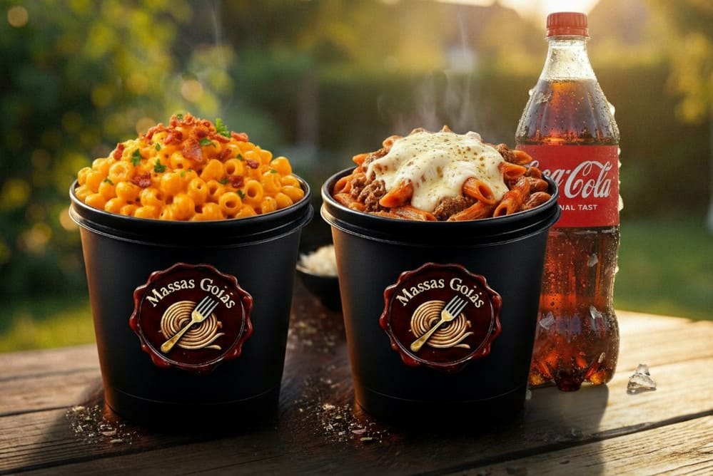 Macarrão Carne Desfiada + Macarrão Mac & Cheese c/ Bacon.