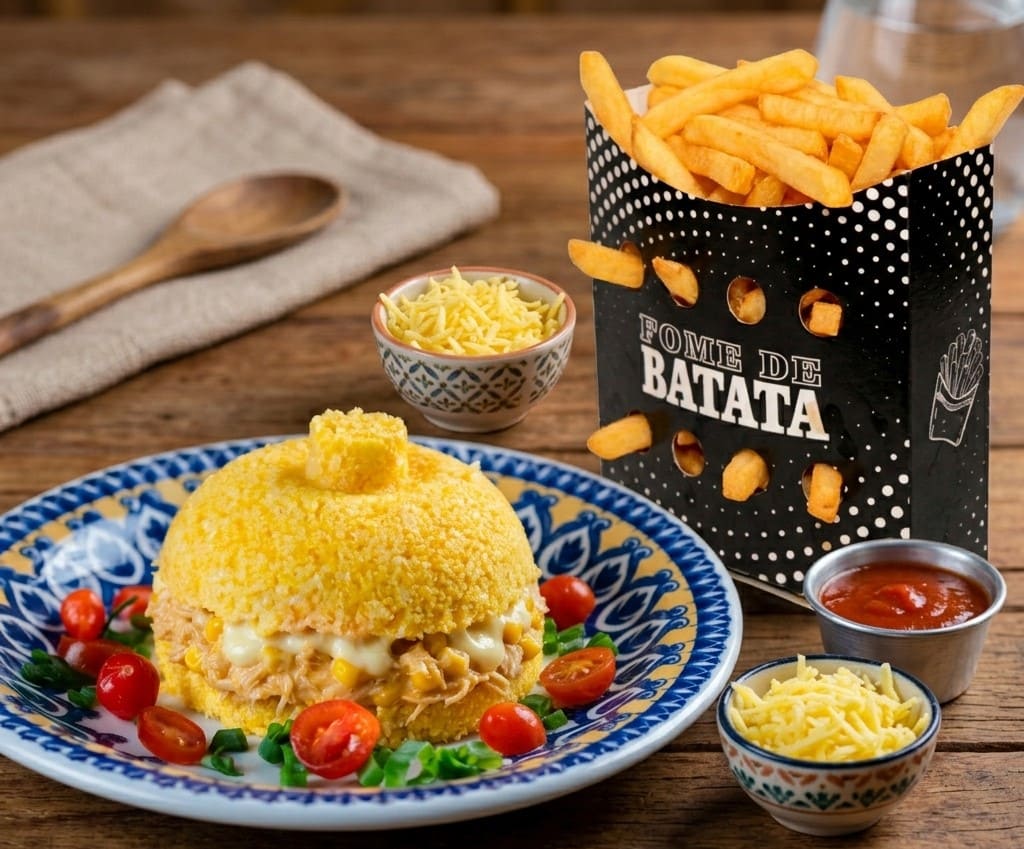 Cuscuz Frango Cremoso c/ Milho e Catupiry + Fritas 200g.