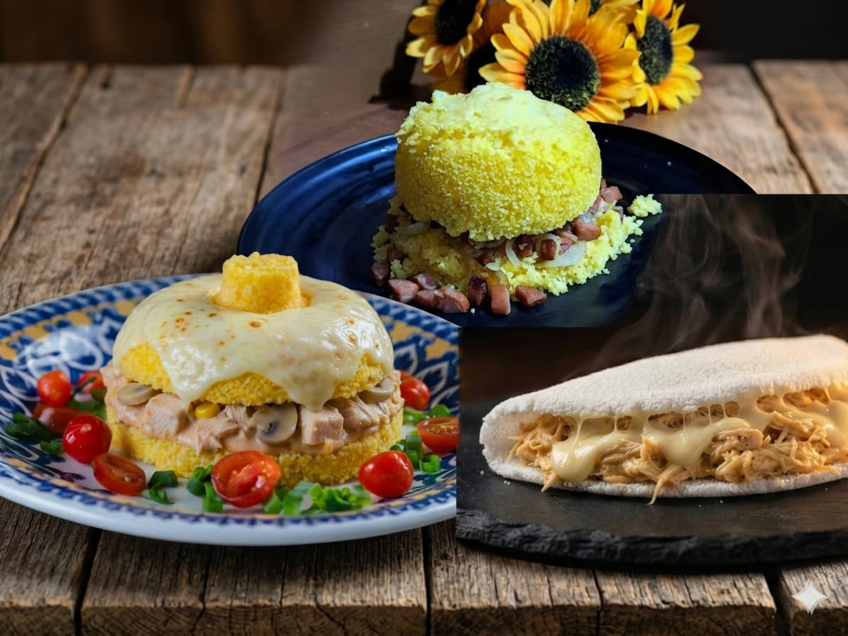 Cuscuz Calabresa + Cuscuz Strogonoff + Tapioca Bolonhesa.