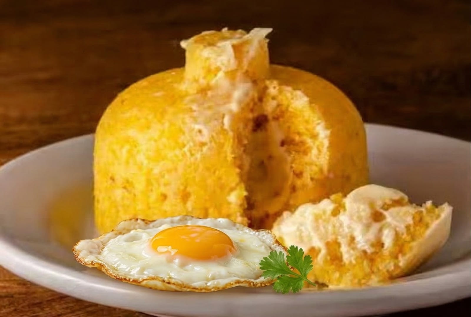 cuscuz recheado ovo frito e queijo mussarela peso Aprox 600g.