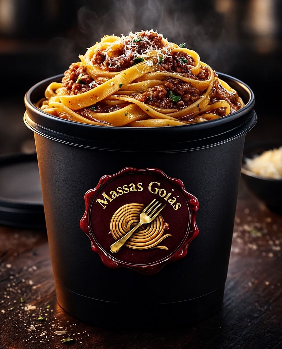 Macarrão tipo talharim com molho bolonhesa com bacon pote de 500ml.
