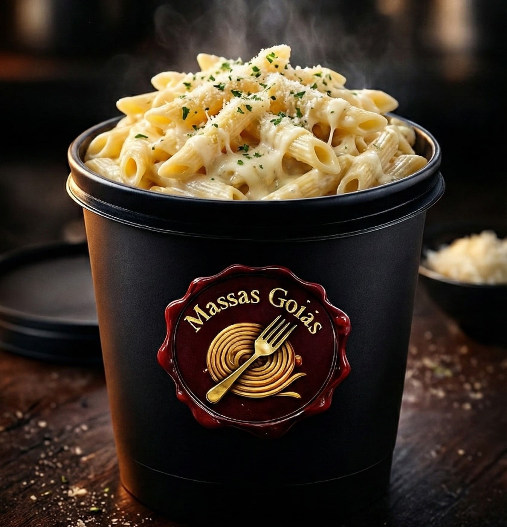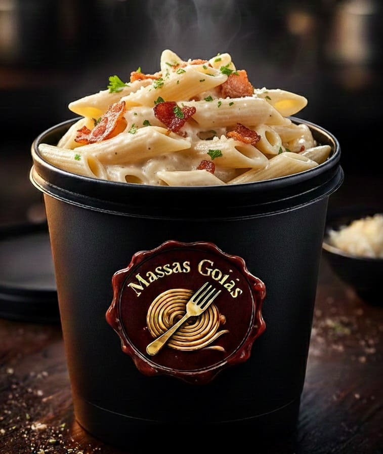 Macarrão tipo penne ao molho branco com bacon pote de 500ml.