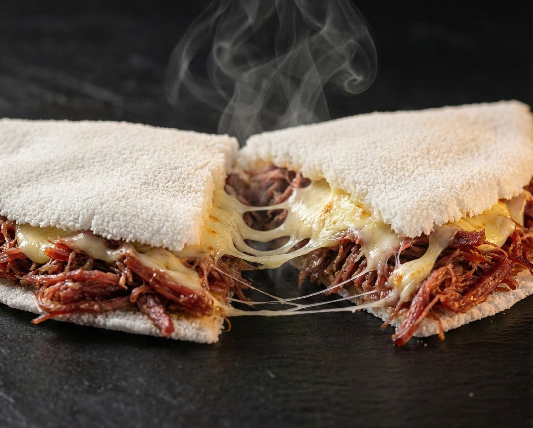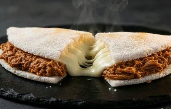 tapioca recheada com carne louca.