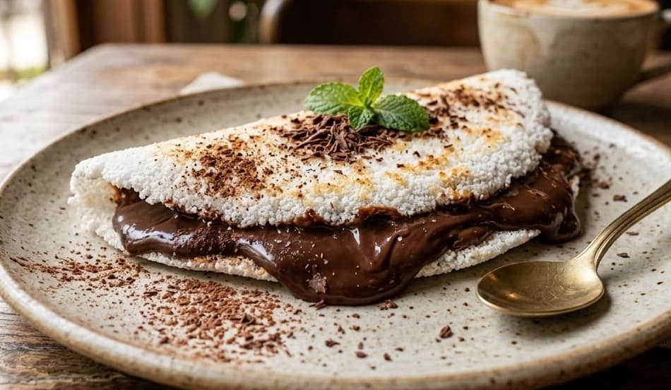 tapioca recheada com chocolate.