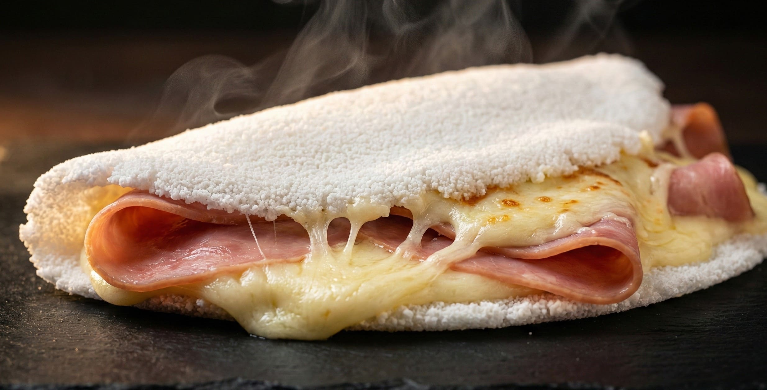 tapioca recheada com presunto e queijo mussarela.