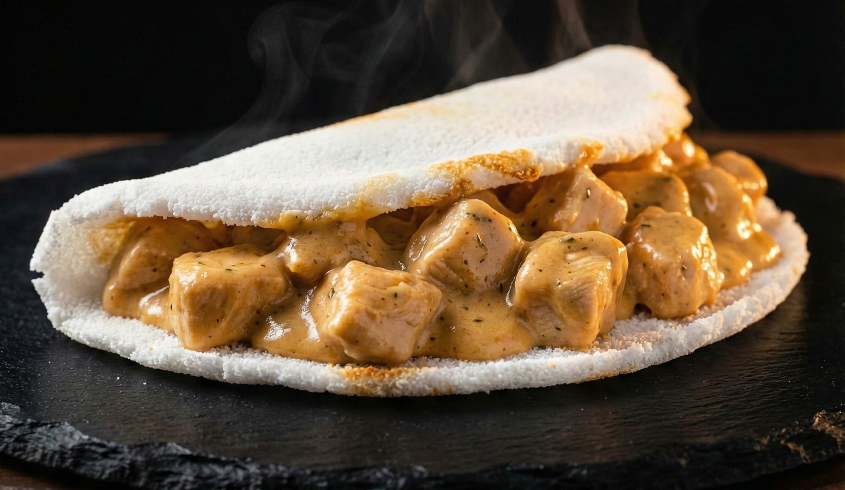 tapioca recheada com frango cremoso com milho.